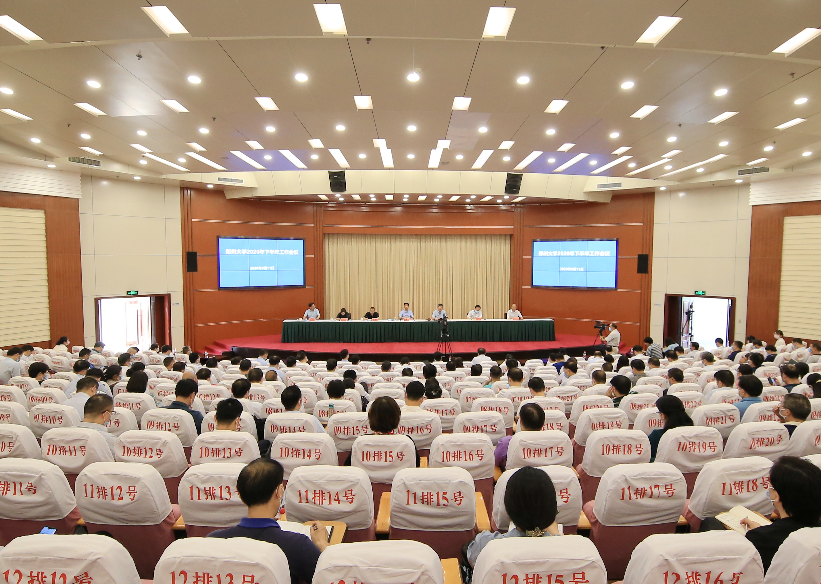 9月11日下午,鄭州大學在綜合管理中心第一報告廳召開2020年下半年工作會議,梳理總結上半年工作,安排部署下半年工作。全體在校校領導,全體中層正職干部、高層次人才代表、一流建設學科和“沖A”學科負責人參加會議,各部門、各單位中層副職干部和教師代表通過視頻直播方式參會。會議由校黨委書記宋爭輝主持。