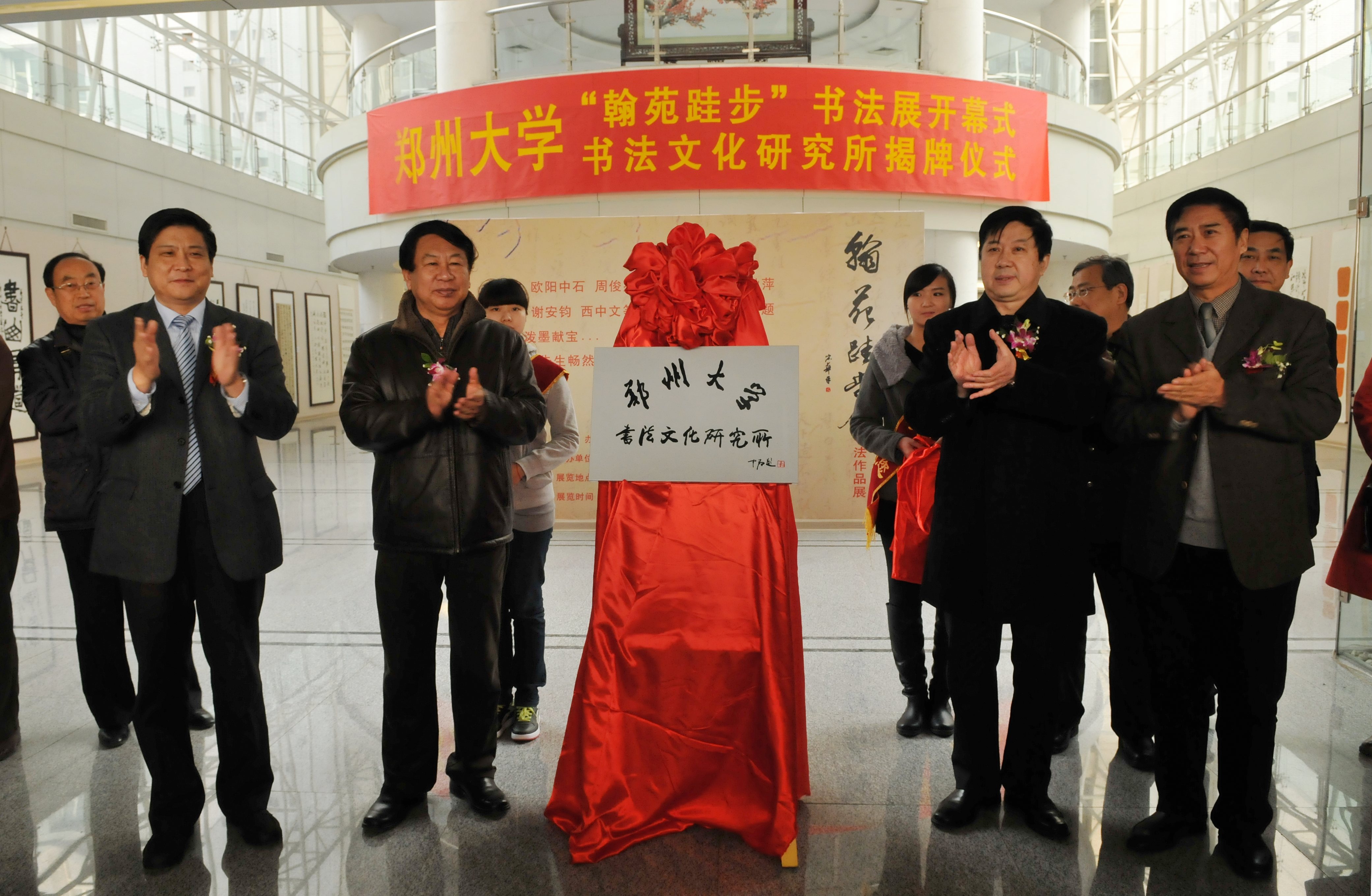 常務副校長徐振魯、校黨委副書記吳宏亮與宋華平主席、周俊杰名譽主席為“鄭州大學書法文化研究所”揭牌。