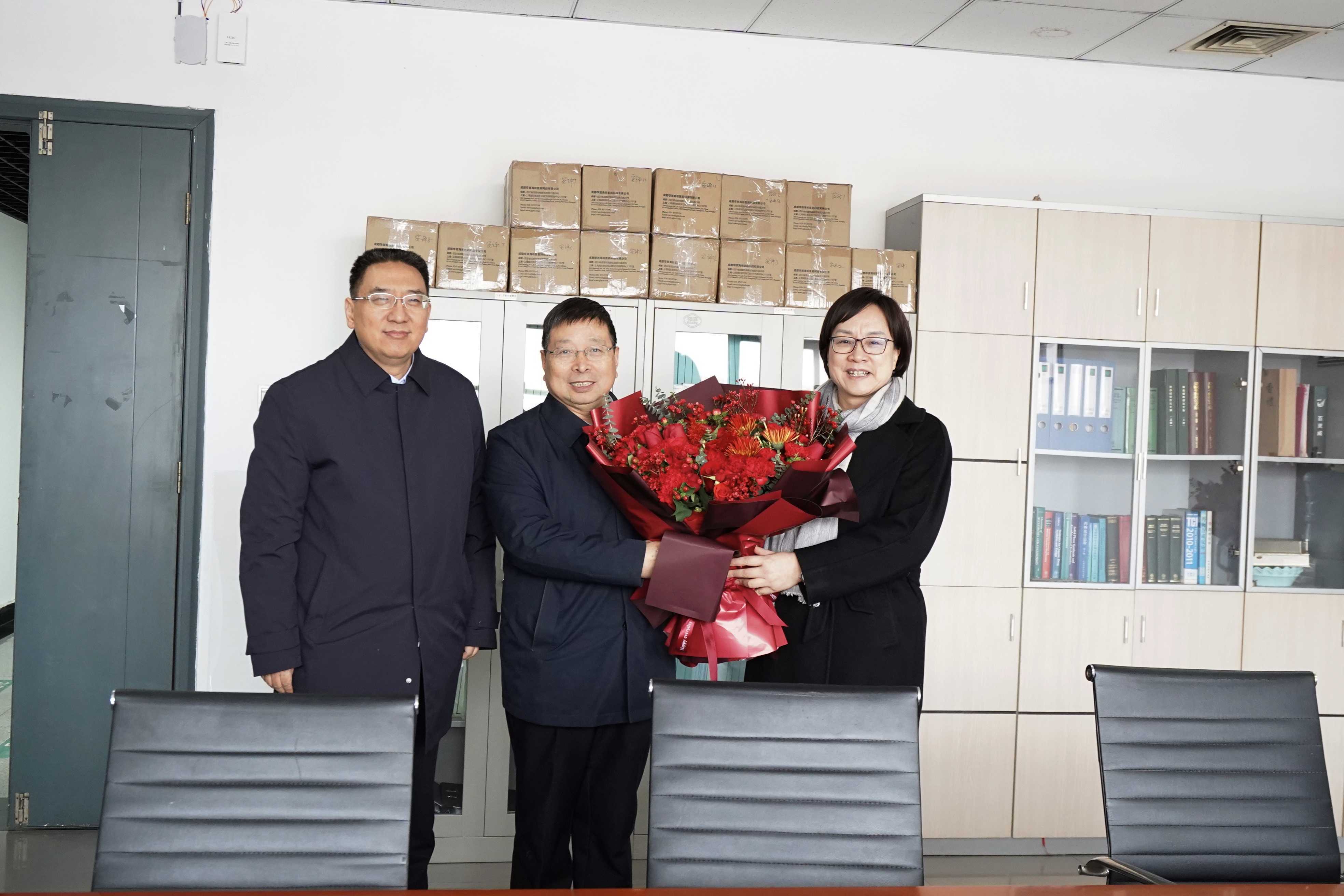 隨后,校領導們來到平原實驗室和中原關鍵金屬實驗室,分別慰問了常俊標院士和趙中偉院士,向他們獻上鮮花致以新春的問候。校領導們與兩位院士深入交流,感謝他們為學校發展作出的重要貢獻,并了解春節安排、實驗室運轉以及團隊最新進展等情況。兩位院士表示,感謝學校的溫暖關心和大力支持,在新的一年將繼續熱情投入工作,帶領團隊產出更多成果,為學校“雙一流”建設、服務國家戰略與區域經濟發展作出更大的貢獻。