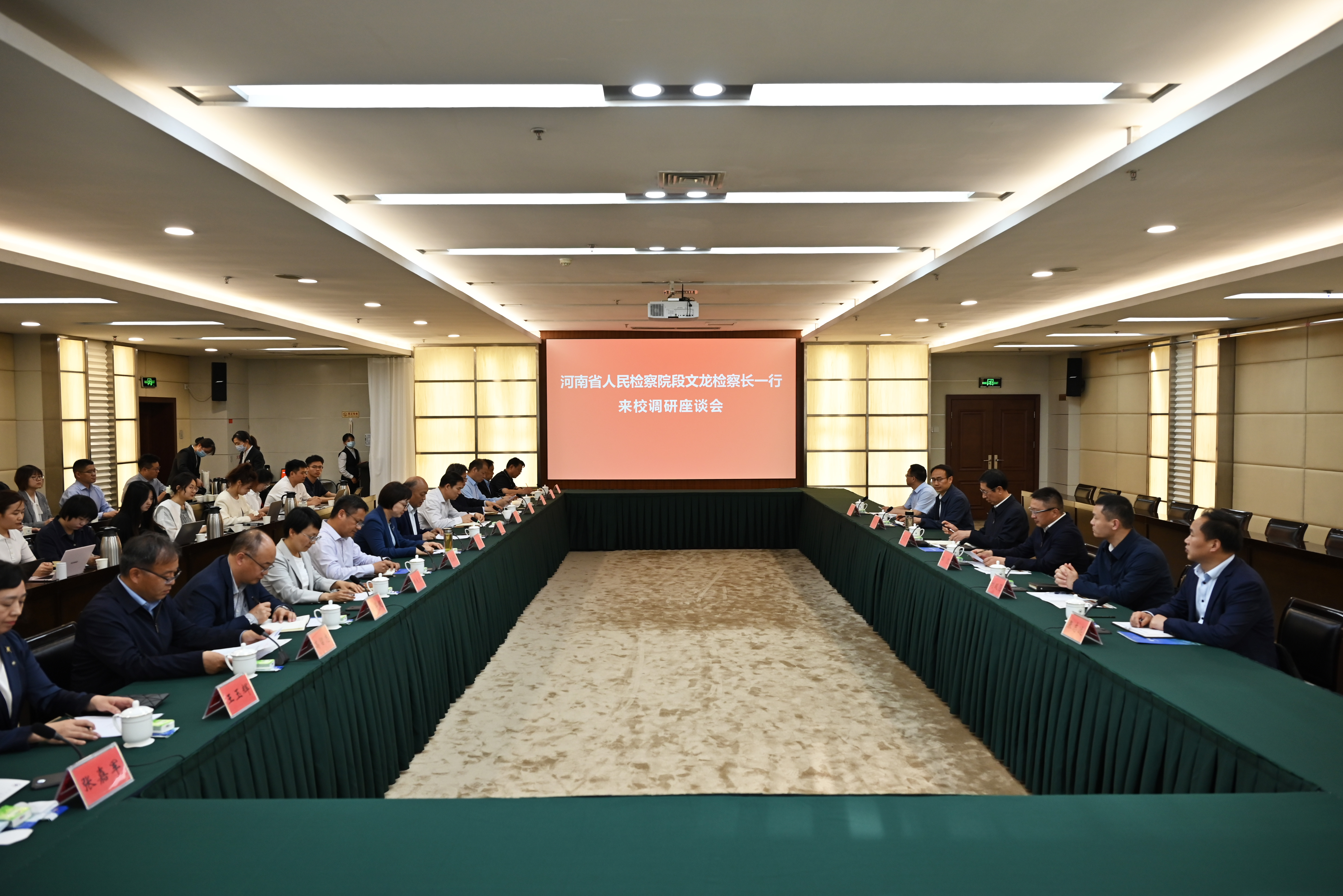 河南省人民檢察院黨組書記、檢察長段文龍一行來校調(diào)研座談會現(xiàn)場