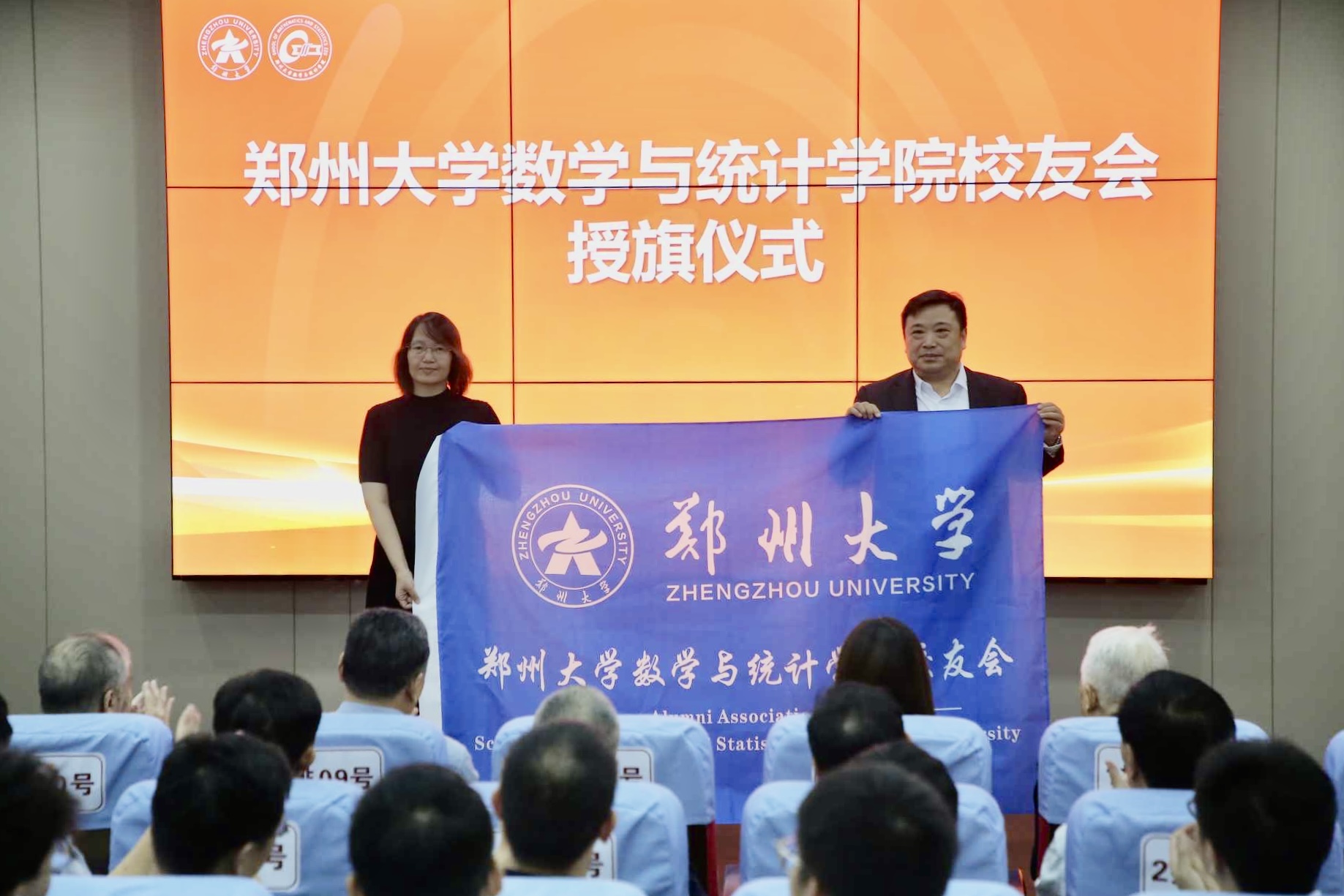 胡少偉致辭并為學院校友會揭牌、授旗,頒發會長聘書。他代表學校向數學與統計學院校友會的成立表示熱烈祝賀,并表示校友是學校最寶貴的財富,是學校發展的參與者和見證者,同時對校友會未來發展提出了三點希望:一是完善工作機制,健全組織架構;二是加強溝通聯絡,增進校友情誼;三是凝聚校友力量,共建交流平臺。希望全體鄭大數統人不斷進取,勇于擔當,為中國式現代化做出更大貢獻。