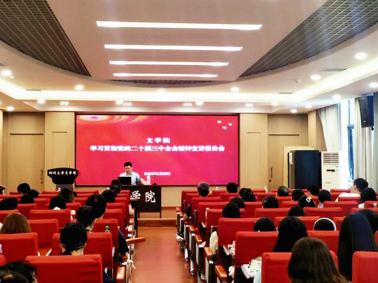 為深入學(xué)習(xí)貫徹黨的二十屆三中全會精神,根據(jù)校黨委統(tǒng)一部署,近日,鄭州大學(xué)學(xué)習(xí)貫徹黨的二十屆三中全會精神宣講團(tuán)成員許昊到文學(xué)院作宣講報告。文學(xué)院全體教職工和部分學(xué)生代表參加。