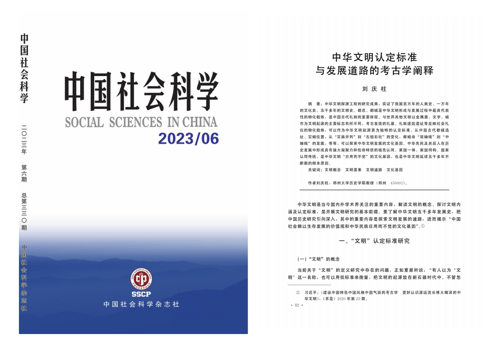 《中華文明認定標準與發展道路的考古學闡釋》發表于《中國社會科學》2023年第6期
