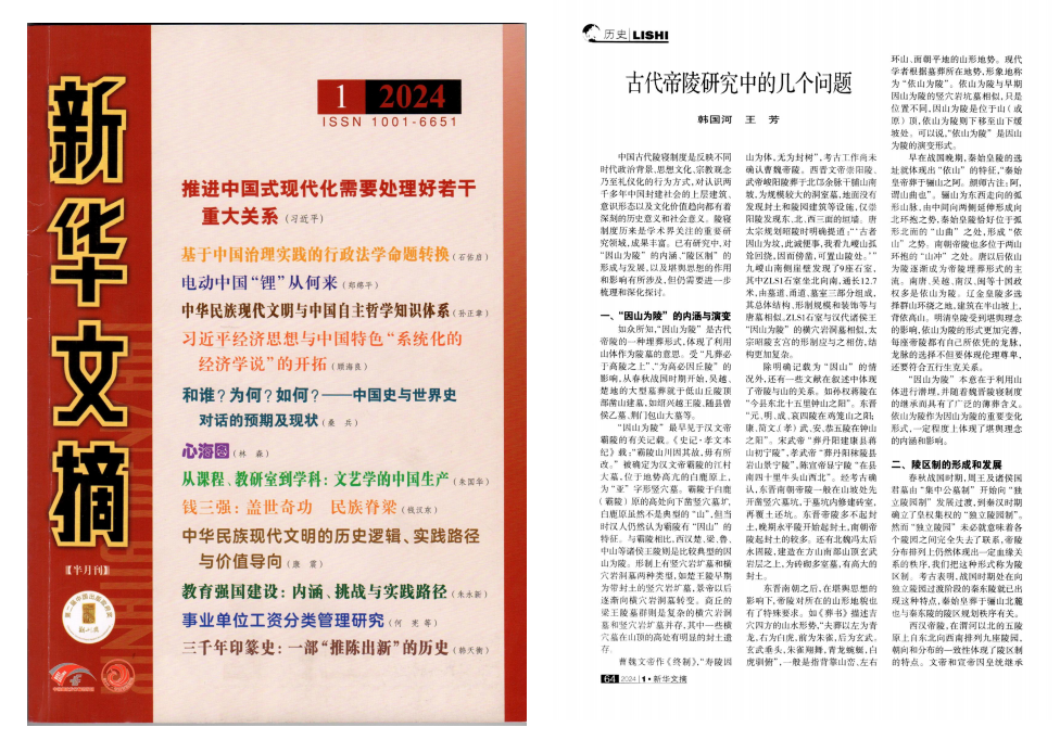 韓國河教授《古代帝陵研究中的幾個問題》被《新華文摘》全文轉載