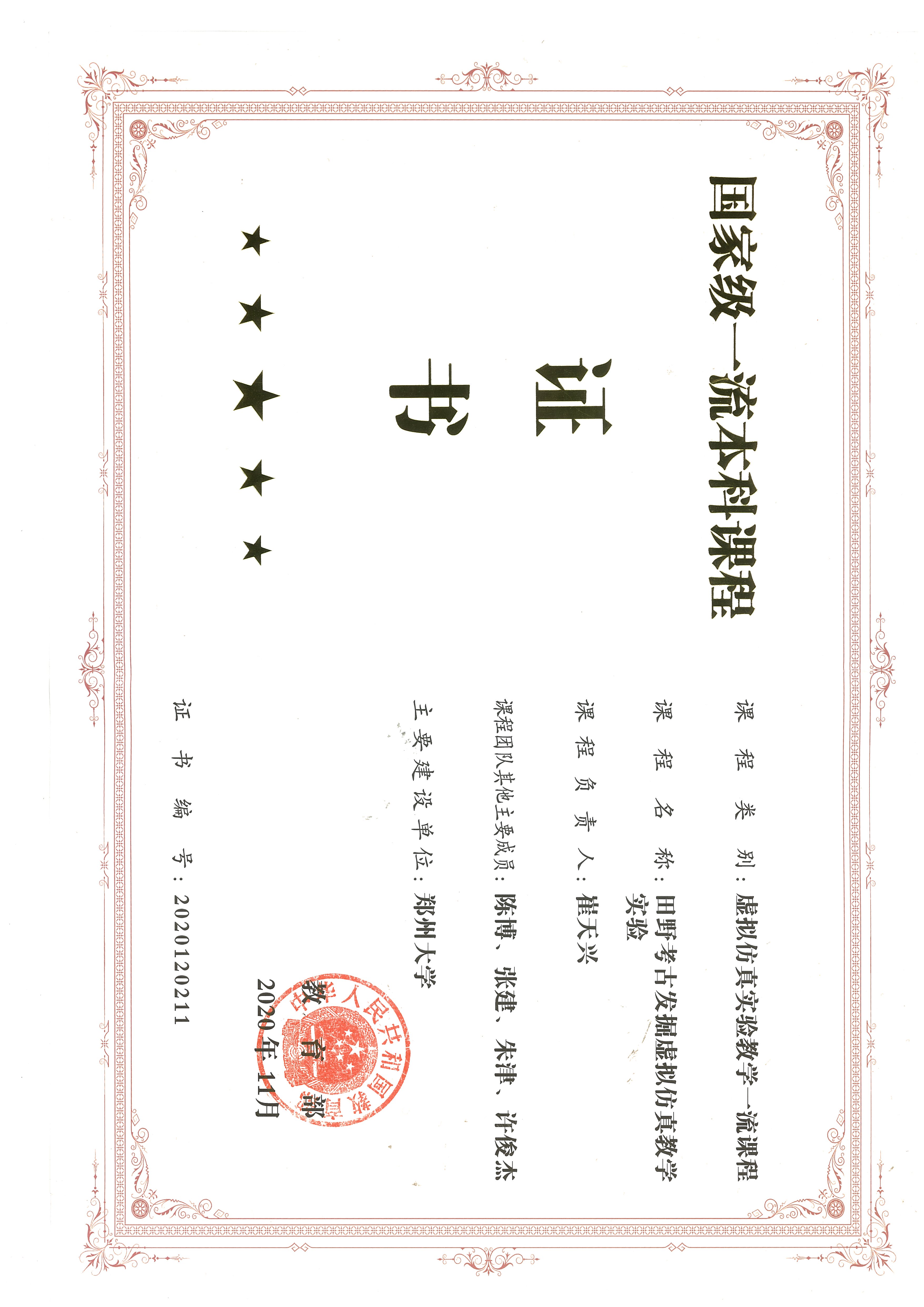 《田野考古發掘虛擬仿真教學實驗》國家級一流本科課程證書