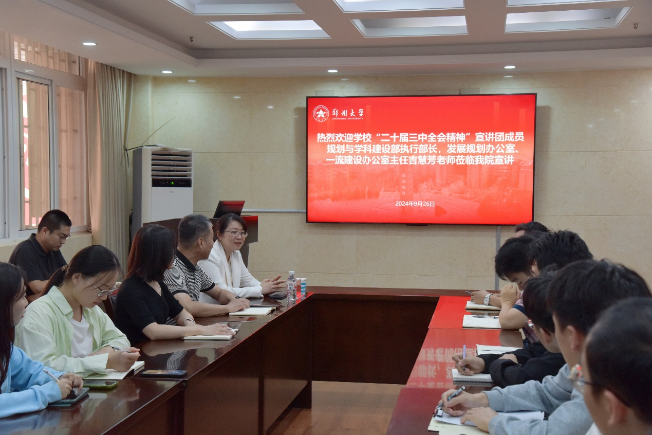 為深入學(xué)習(xí)宣傳貫徹黨的二十屆三中全會(huì)精神,根據(jù)校黨委統(tǒng)一部署,9月27日,鄭州大學(xué)學(xué)習(xí)貫徹黨的二十屆三中全會(huì)精神宣講團(tuán)成員、馬克思主義學(xué)院趙曉毅老師到河南省醫(yī)藥科學(xué)研究院作宣講報(bào)告。學(xué)院全體教工和學(xué)生代表參加。