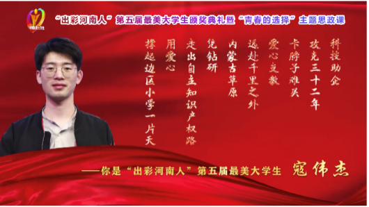 寇偉杰榮獲“出彩河南人”第五屆最美大學(xué)生