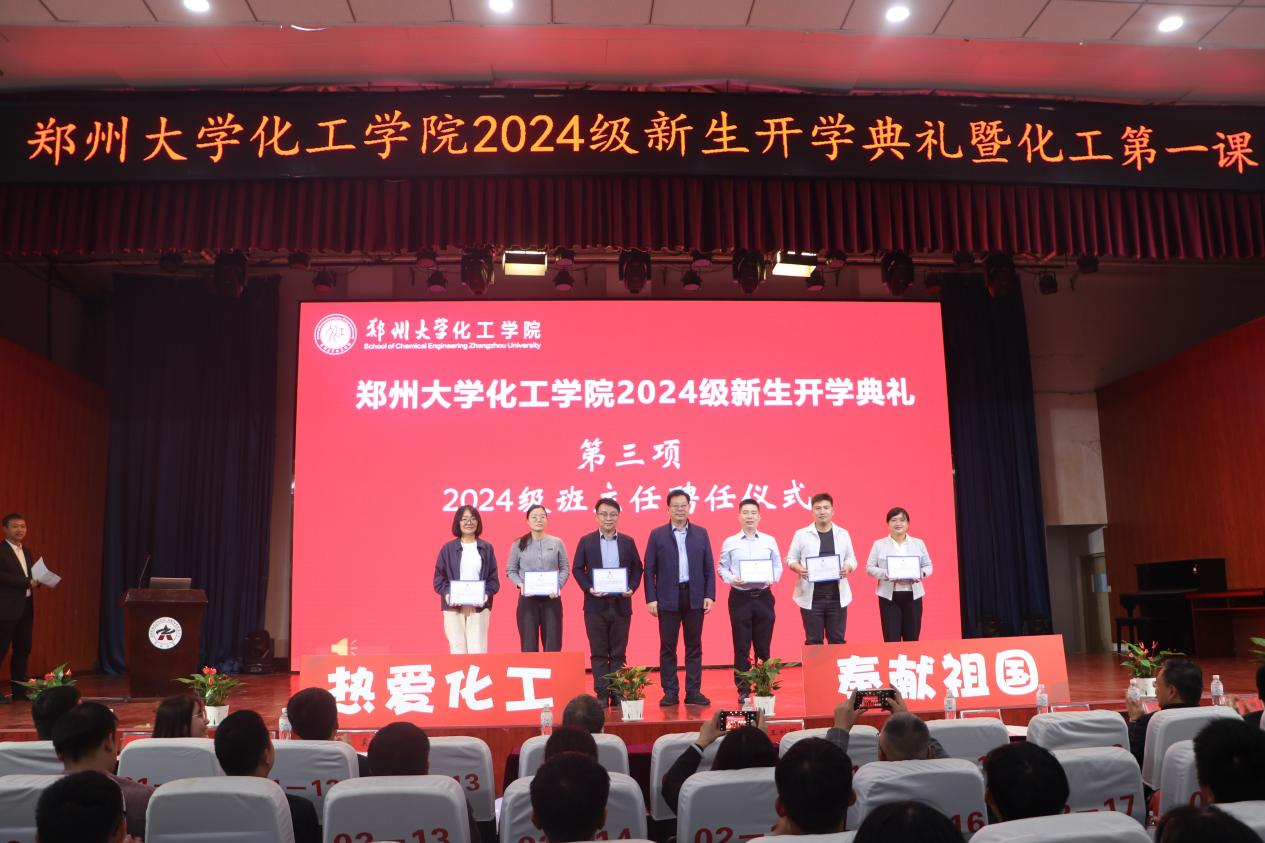 近日,鄭州大學化工學院2024級新生開學典禮暨“化工第一課”在大學生活動中心舉行。校黨委副書記王利國、副校長劉春太出席,化工學院全體黨政班子成員、各教工支部書記、系主任、教師代表、全體輔導員和2024級全體新生參加。