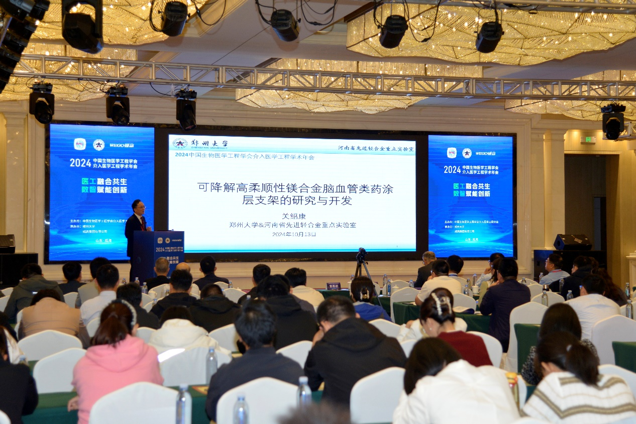 近日,由中國生物醫學工程學會介入醫學工程分會(以下簡稱“分會”)主辦,鄭州大學和威高介入醫療集團有限公司共同承辦的2024中國生物醫學工程學會介入醫學工程學術年會在威海召開。分會主任委員、鄭州大學材料科學與工程學院關紹康,分會前任主任委員、首都醫科大學附屬北京安貞醫院心臟內科中心馬長生,分會名譽主任委員、北京大學奚廷斐,中國生物材料學會副理事長、分會前任主任委員、北京大學鄭玉峰,分會副主任委員、威高介入醫療集團董事長孫豐偉等出席開幕式,來自國內高校、醫院、科研單位及知名醫療企業的200余名專家學者與企業代表參加會議。