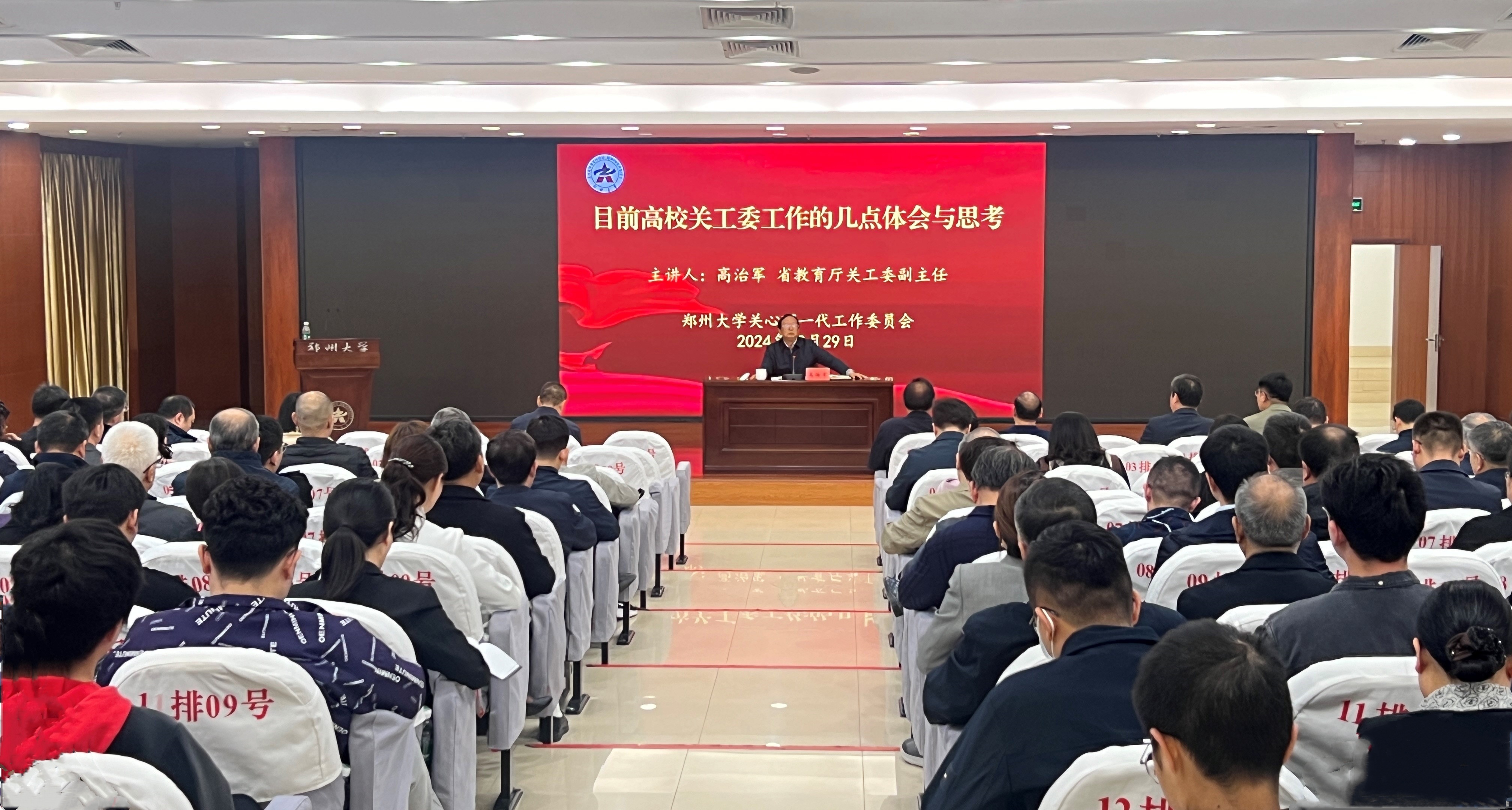 為深入貫徹落實習近平新時代中國特色社會主義思想和習近平總書記對關心下一代工作的重要指示精神,10月29日,鄭州大學關心下一代工作委員會特別邀請河南省教育廳關工委副主任、河南省委高校工委原專職委員高治軍來校做專題報告。校關工委名譽主任李興成,副主任費鶴祥、白玉柱,校關工委11個成員單位相關負責人,全校50個二級關工委負責人及學生代表200余人參加報告會。校關工委常務副主任吳宏陽主持報告會。