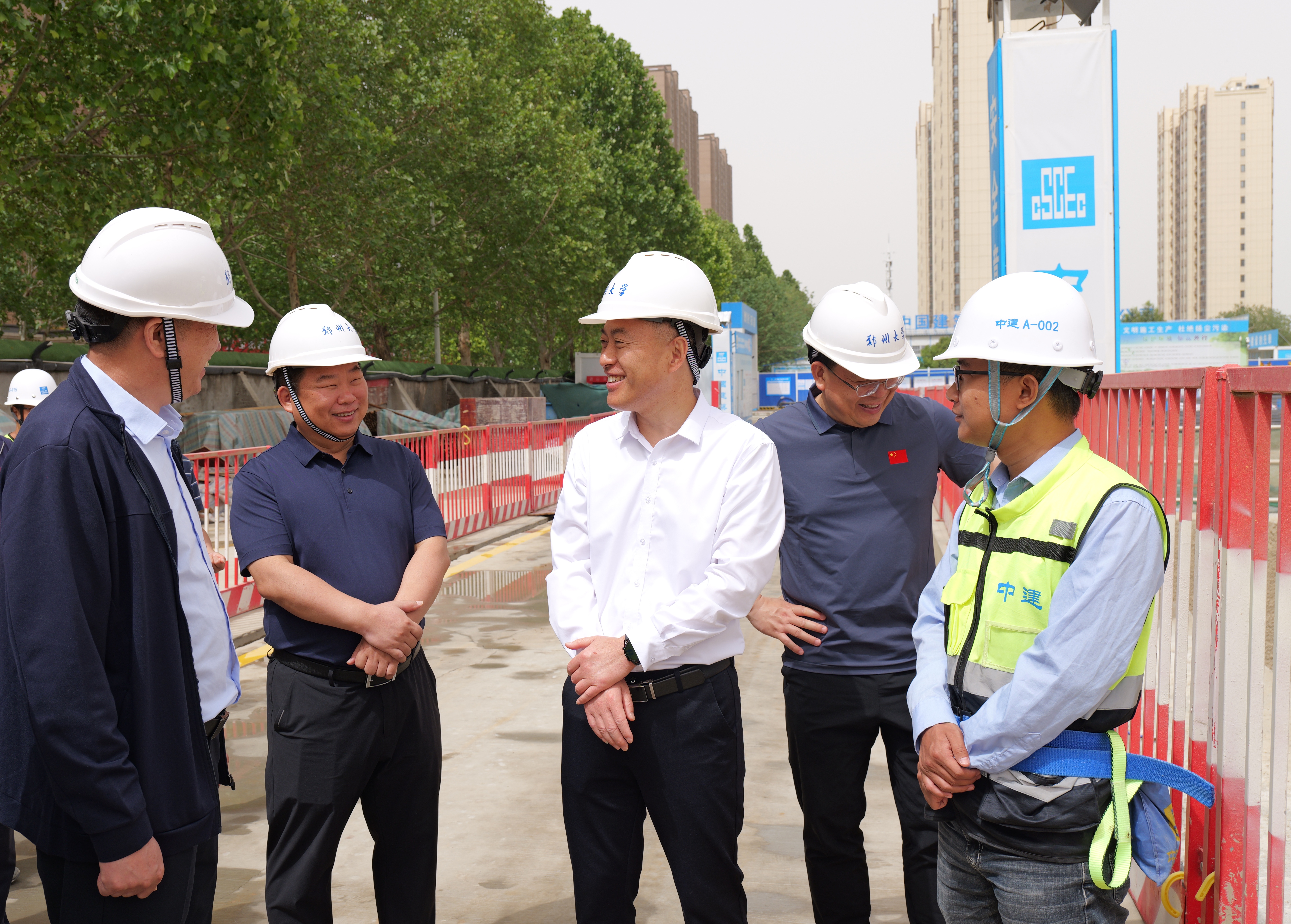 在“兩重”建設(shè)項目鄭州大學(xué)水利學(xué)科群綜合實驗平臺建設(shè)現(xiàn)場,李成偉與項目負(fù)責(zé)人深入交流,詳細(xì)詢問施工難點、設(shè)備安裝等情況,并看望慰問正在辛勤勞作的建設(shè)者。李成偉表示,水利學(xué)科群綜合實驗平臺作為支撐學(xué)科發(fā)展的關(guān)鍵基礎(chǔ)設(shè)施,必須以高標(biāo)準(zhǔn)、嚴(yán)要求推進(jìn)建設(shè)工作,要科學(xué)制定施工計劃,倒排工期、掛圖作戰(zhàn),在確保工程質(zhì)量和施工安全的前提下,嚴(yán)格按照時間節(jié)點穩(wěn)步推進(jìn),確保項目按時竣工并投入使用,為學(xué)校水利學(xué)科沖擊A類學(xué)科提供堅實的硬件支撐。