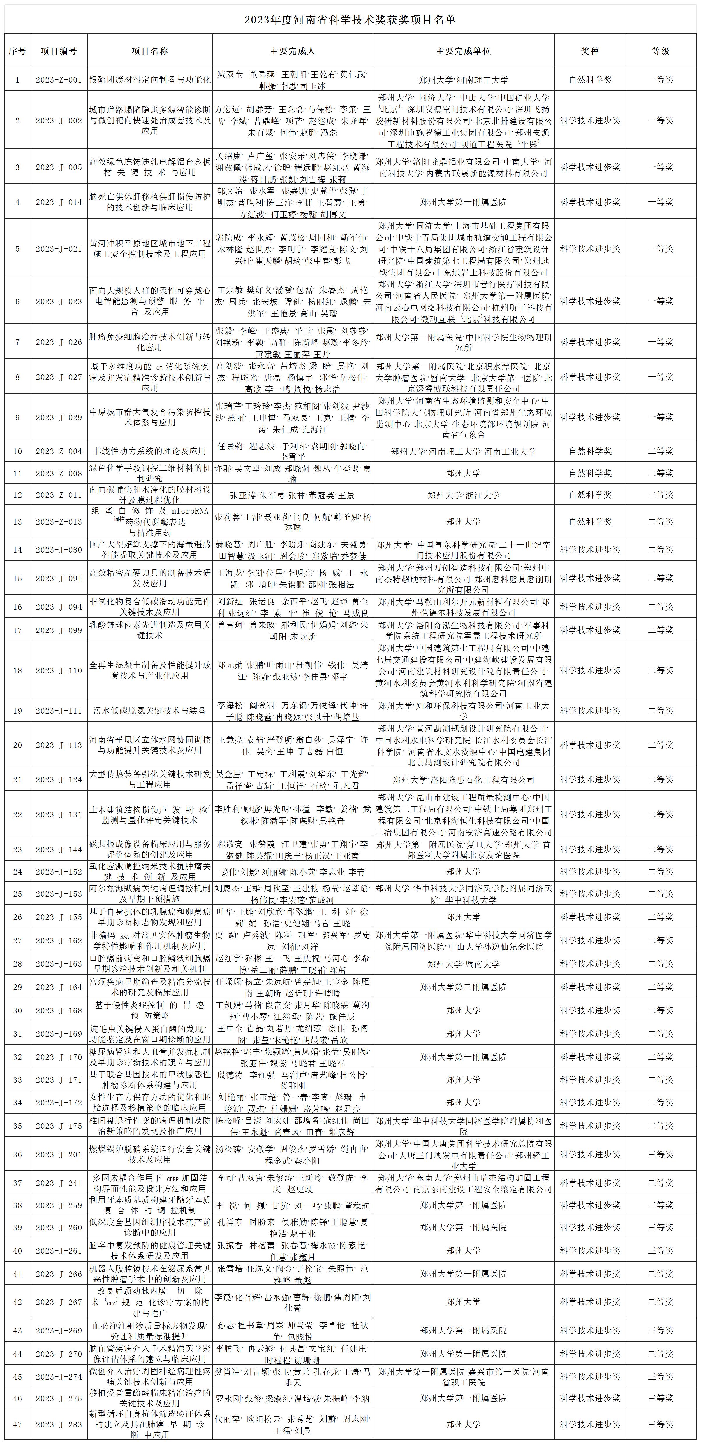 鄭州大學(xué)榮獲47項(xiàng)2023年度河南省科學(xué)技術(shù)獎勵