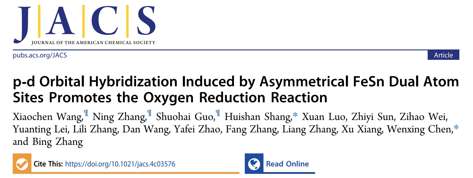 相關(guān)研究成果以“p-d Orbital Hybridization Induced byAsymmetricalFeSn Dual Atom Sites Promotes Oxygen ReductionReaction”為題,發(fā)表于國際權(quán)威期刊《Journal of the American Chemical Society》。論文第一作者為王孝臣碩士,通訊作者為尚會姍副研究員和北京理工大學(xué)陳文星副研究員。
