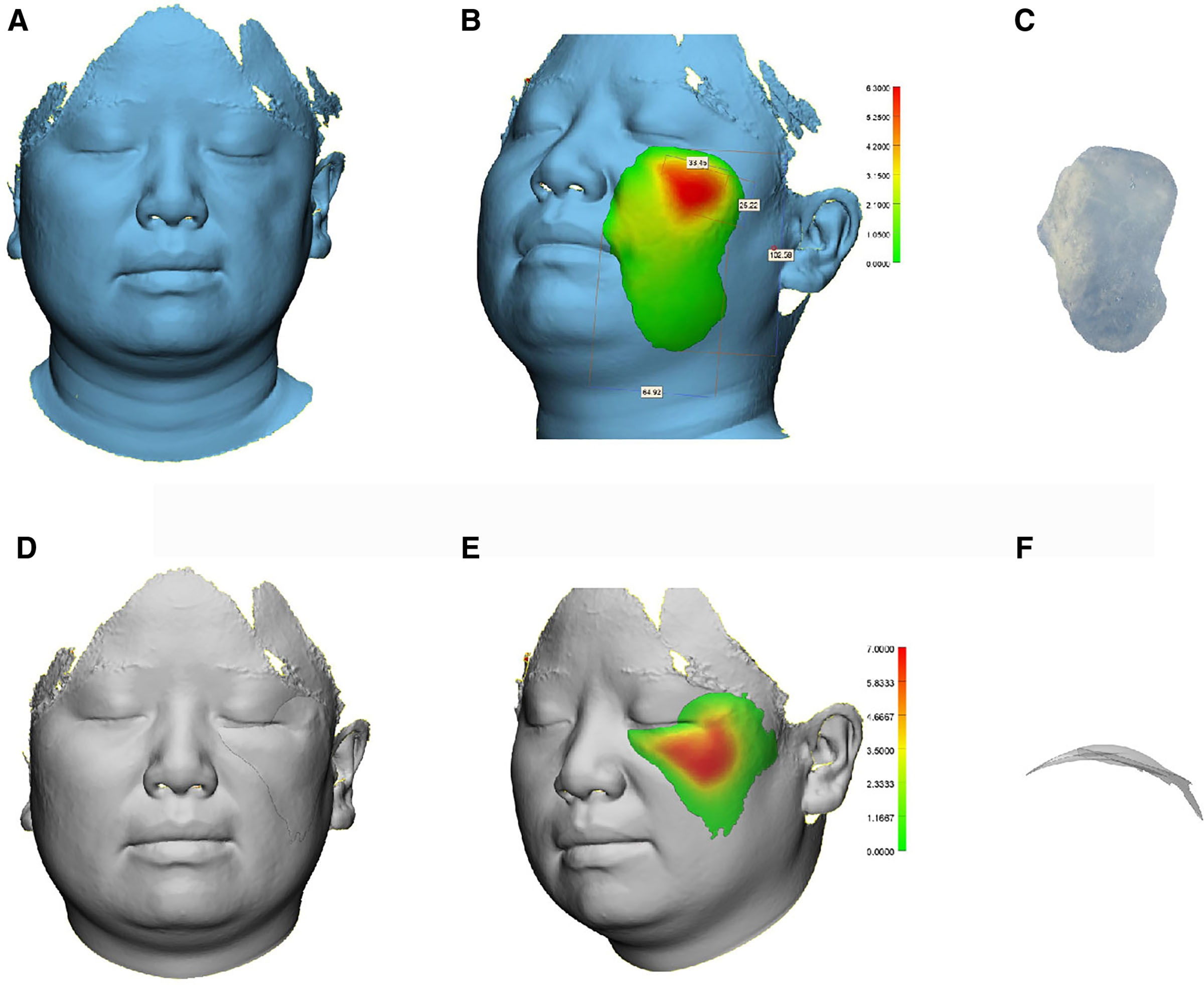 王喜梅教授團隊自2005年開始對此病的臨床研究。在100多例診療經驗的基礎上,團隊創新地提出“兩階段修復”策略。在一期手術中,團隊借助術前數字化 3D掃描與建模,精準鎖定面部缺損區域,將脫細胞真皮基質(ADM)仿照韌帶結構,分層固定在關鍵解剖位點,這一操作既能填補缺損,又能重建面部支撐層次;二期手術時,則在脫細胞真皮基質構建的穩定框架內進行自體脂肪移植(AFG),讓面部形態更加自然美觀。