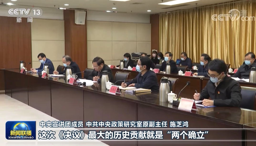 《新聞聯播》還報道了中央宣講團在新疆、福建、廣西、吉林等地宣講黨的十九屆六中全會精神,和基層干部群眾面對面交流學習心得體會,推動全會精神走深走實。