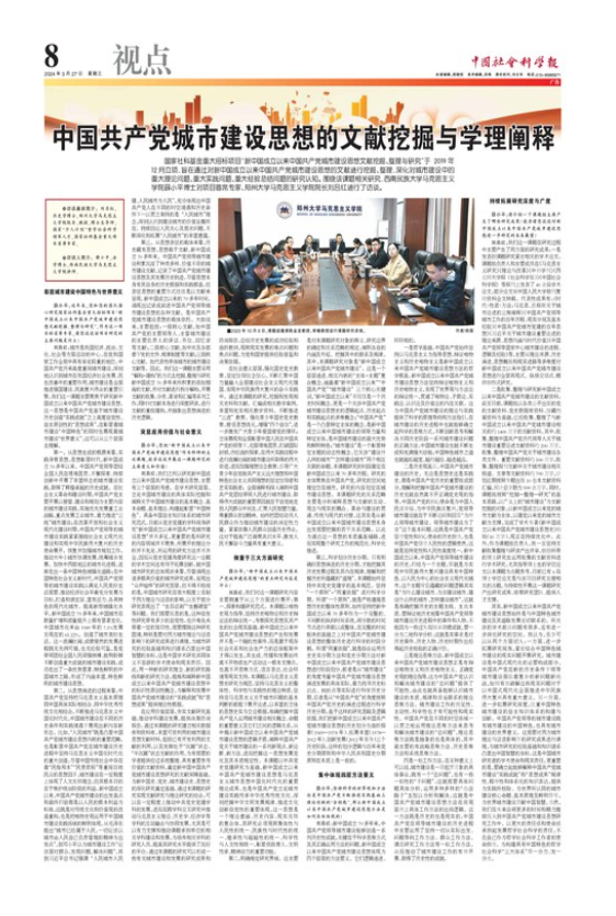 劉呂紅:我們這一課題在研究過程中主要產生了兩方面的研究成果:一是發表跟課題研究緊密相關的學術論文。課題組負責人和主要成員在《馬克思主義研究》《理論與改革》《中州學刊》《西北師大學報(社會科學版)》《中國社會科學報》等報刊上發表了40余篇學術論文,部分論文被中國人民大學報刊復印資料全文轉載。代表性成果有:《時代·性質·方法:馬克思、恩格斯關于城市論述的三維闡釋》《中國共產黨領導城市工作的百年歷程、現實審視及基本經驗》《中國共產黨城市黨建的百年思想》《習近平關于城市建設重要論述的理論來源、思想內涵與時代價值》《中國共產黨領導國家中心城市建設的進程、邏輯及經驗》等,主要從理論淵源、歷史演進、思想概貌和現實進路等多維度對新中國成立以來中國共產黨城市建設思想進行全景再現式、縱橫交錯式、精耕細作式研究。