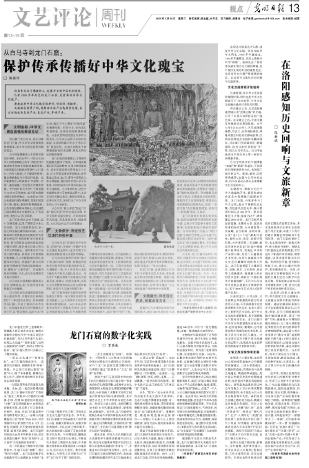白馬寺、龍門石窟在保護好、傳承好、傳播好中華文化瑰寶方面的實踐,啟示我們:文化遺產的存續,本質上是文明生命力的延續,也是文化主體性認同的生動實踐,我們要更加深化對文化遺產的認知。作為一名文物考古領域的教育工作者,希望依托鄭州大學、河南考古與文化遺產學院、中國石窟文化聯合研究生院等平臺,逐步形成完備的人才培養鏈條和體系,為包括白馬寺、龍門石窟在內的文物保護和傳承傳播,培養和輸送更多人才,進一步保護好、傳承好、傳播好中華文化瑰寶。
