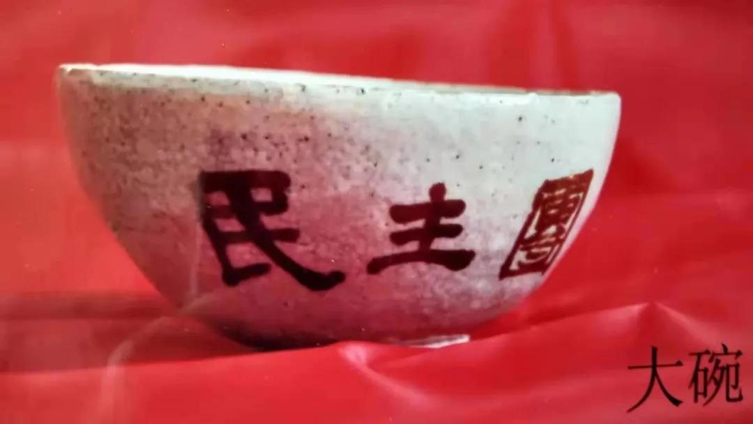 1959年2月,中共河北省阜平縣城南莊委員會向中國國家博物館捐贈了一只瓷碗,是抗戰時期晉察冀邊區第一屆參議會的紀念品。2007年7月4日“七七事變”70周年紀念日前,中國國家博物館收到了一只由民間捐贈的同樣來源的瓷碗。這只瓷碗碗口直徑14.5厘米,高7.8厘米,釉呈淡紅色,外壁燒有朱紅色字樣:“民主團結1943.1”。該瓷碗由畢業于鄭州大學的袁升興捐贈,已深埋于地下77年之久。