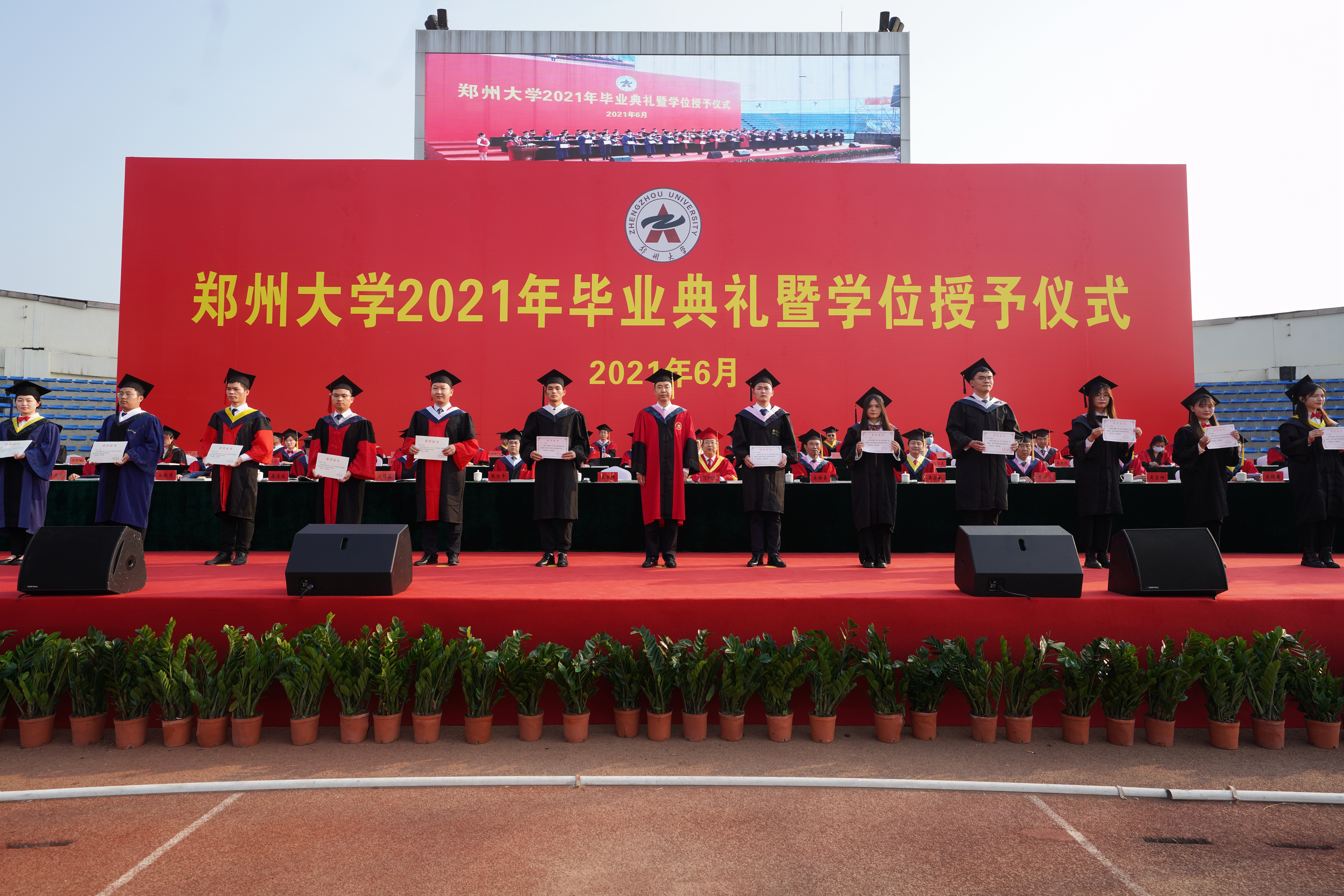 荷葉亭亭綠滿塘,累累碩果滿枝香。6月28日清晨,迎著初升的太陽、沐浴著清爽的晨風(fēng),鄭州大學(xué)1.8萬余名畢業(yè)生身著學(xué)位服在體育場(chǎng)上有序就坐,一個(gè)個(gè)充滿著收獲的喜悅,共同見證完成學(xué)業(yè)的美好而莊嚴(yán)的時(shí)刻。 “從黨史學(xué)習(xí)中汲取奮進(jìn)力量,讓青春在奮斗中綻放絢麗之花。”體育場(chǎng)四周的墻上張貼的一個(gè)個(gè)大紅條幅,若如師長(zhǎng)們一句句語重心長(zhǎng)的教誨。“力行求是,牢記使命共筑新時(shí)代;勇于擔(dān)當(dāng),不負(fù)期望榮耀鄭大人”,一個(gè)個(gè)大紅燈籠飄揚(yáng)在空中,條幅上的文字猶如畢業(yè)生們一句句擲地有聲的誓言。畢業(yè)季恰逢建黨百年,鄭州大學(xué)2021年畢業(yè)典禮暨學(xué)位授予儀式隆重舉行。