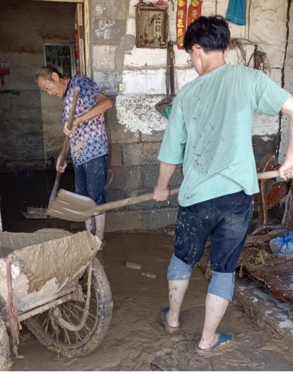 2020級(jí)美術(shù)學(xué)院本科生劉政妥在輝縣洪災(zāi)過后幫助老鄉(xiāng)清淤