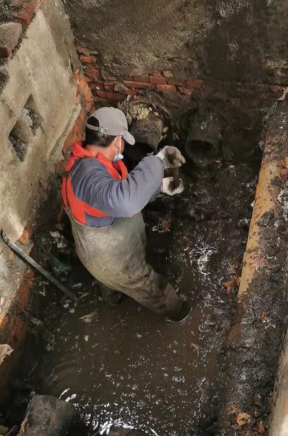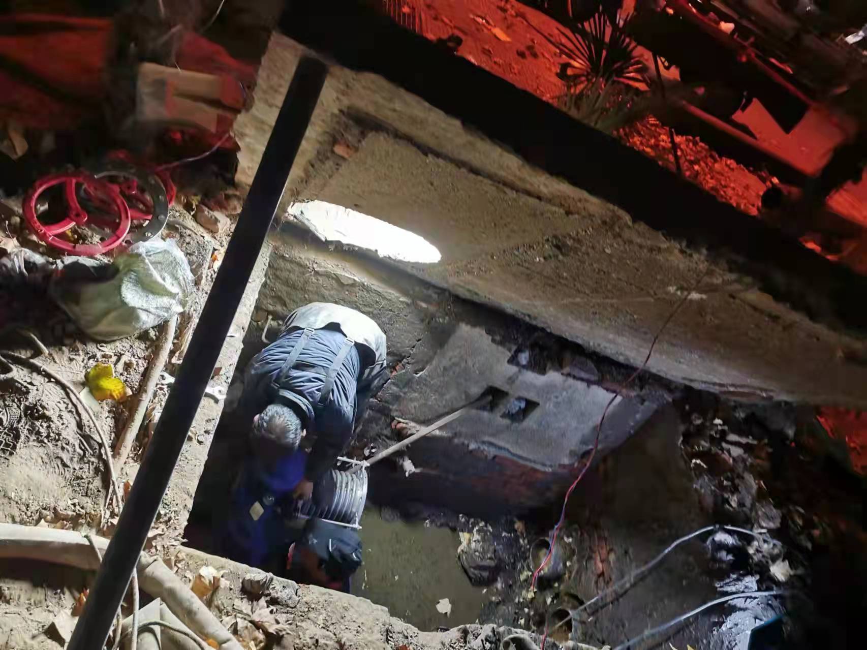 在10月中旬的注水排查過程中,柳園2號樓閥門井內的異常積水現象引起工作人員的重視,他們推測是暖氣管道破裂引起的漏水,并立即展開維修。暖氣管道排列在地下管道溝中,其漏水情況肉眼無法觀察,也很難用機器檢測,只有維修人員鉆進溝中才能進行排查。經過通風后,王猛、刑培育、楊勇等維修人員穿上皮褲,在高一米二的地溝中,貓著腰往深處前行。廁所排出的污水讓溝內的空氣格外混濁,水位最深處已經漫過膝蓋,昏暗的地溝中,頭燈成為指引前行方向唯一的光源。在地溝中彎腰前行了80多米后,他們找到了管道漏水點,最終搶修完畢。排查過程中,許多宿舍樓的外部管道出現爆管情況。工作人員每天都要進行巡查,一旦發現隱患,第一時間展開挖溝、停水、控管、換管等一系列維修工作。例如,在修補柳園17號樓前的管道時,他們從下午兩點一直忙碌到凌晨一點多,不分晝夜地搶修了11個小時,對壞損的管道和閥門進行更換,為后期供暖又添一道保障。