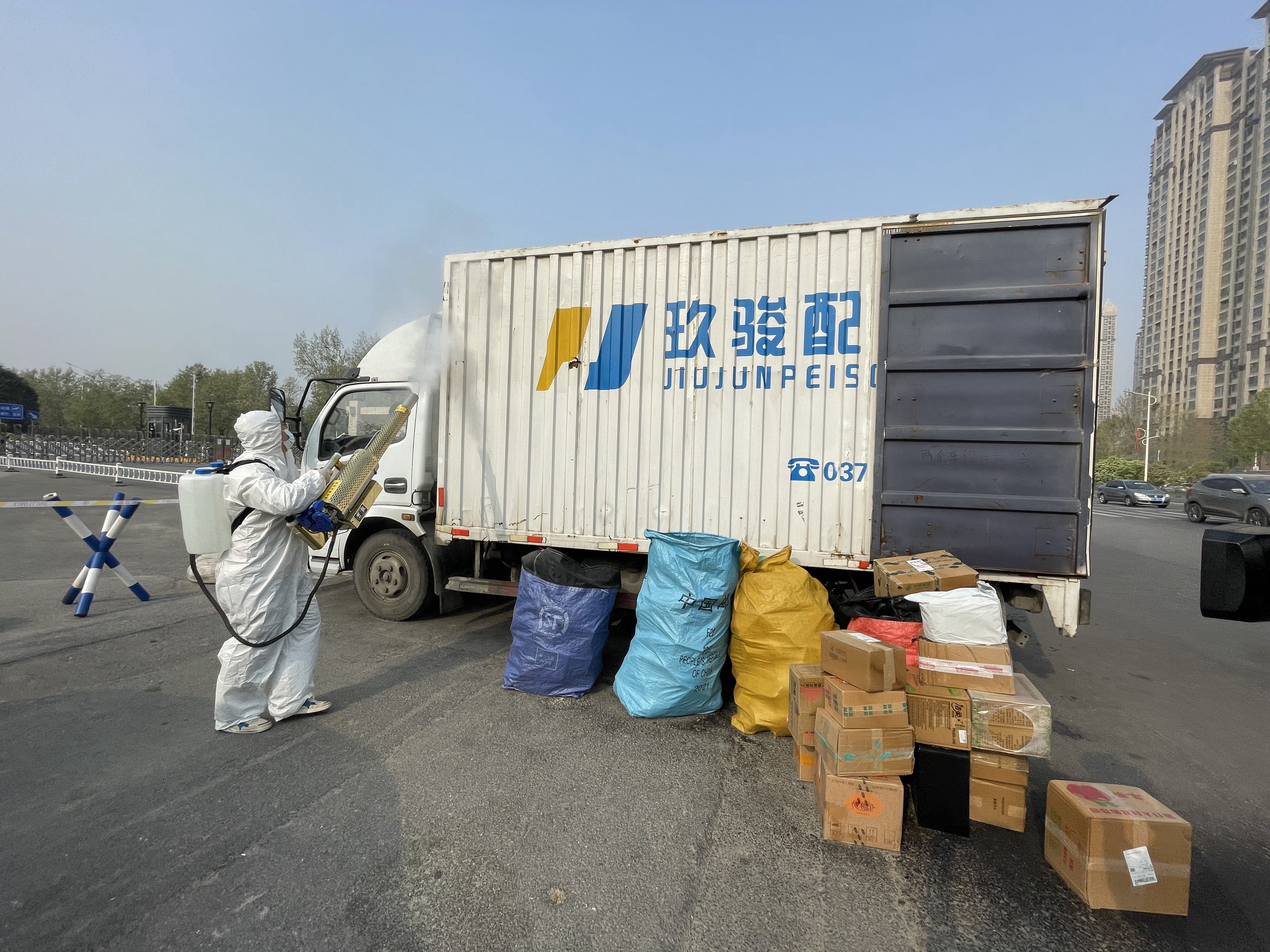 后勤黨員服務隊進行快遞消殺