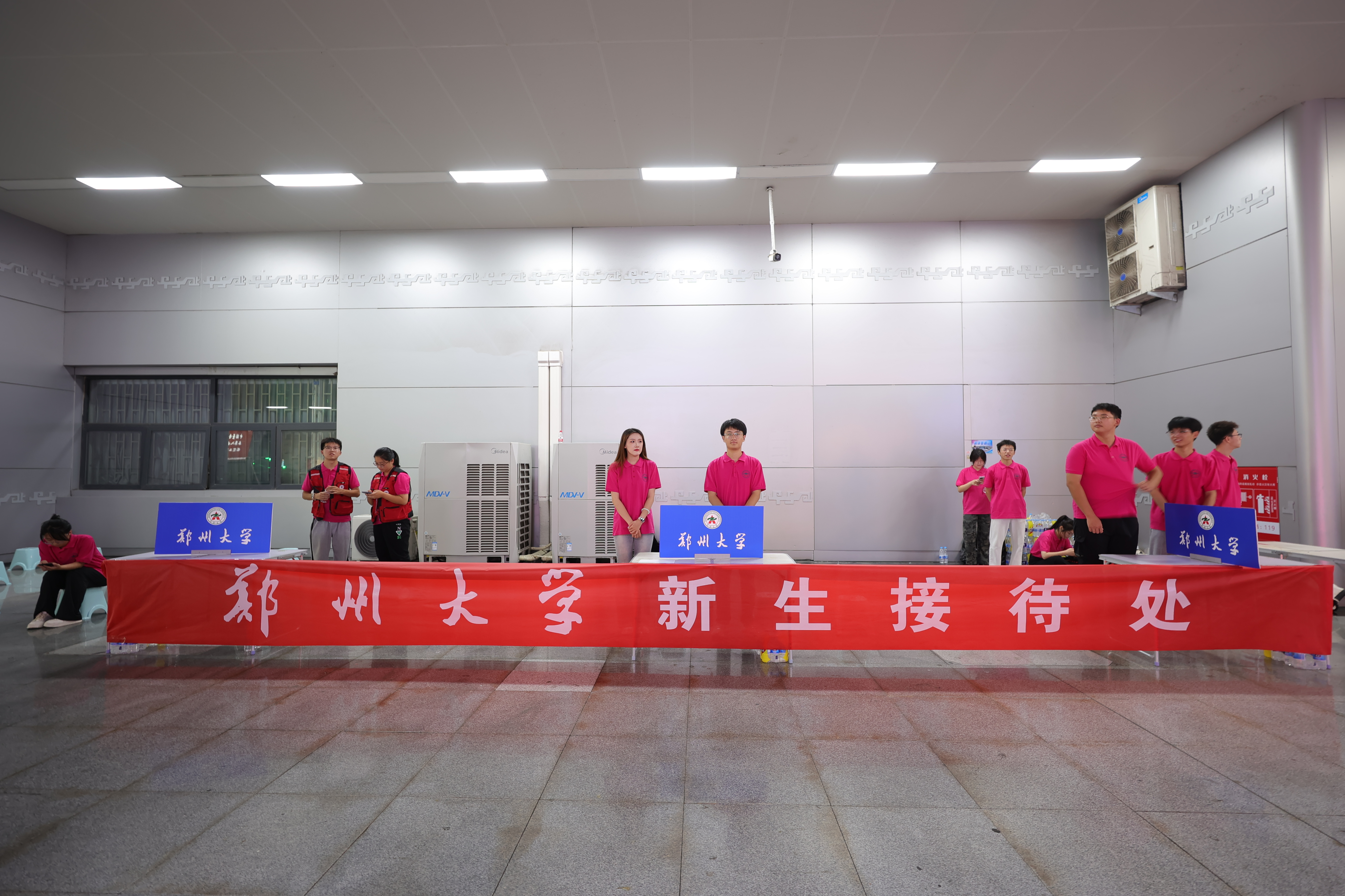 火車站內,身著粉色短袖、高舉“鄭州大學”標識牌的身影是一道亮麗的風景線。學校在鄭州火車站設置迎新接站服務,由迎新大巴車將新生送往學校。每次發車會有一名志愿者同行,提醒新生即將到達的各院系迎新點。部分志愿者會在火車站守夜,確保晚上或凌晨到的新生也能順利到校。