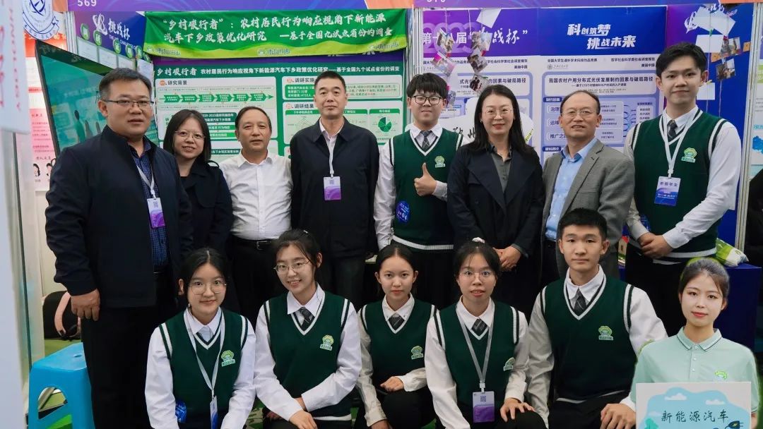 主體賽事中,商學院2020級楊子涵、楊依哲、黃雨茵、王嘉怡、2021級王丹寧、數學與統計學院2020級孫玉杰、高樂巖和美術學院2020級張哲8名同學組成團隊,在商學院王芳、韓淼、孫學敏老師的指導下,提交作品《“鄉村碳行者”:農村居民行為響應視角下新能源汽車下鄉政策優化研究——基于全國九個試點省份的調查》,并榮獲一等獎,取得了近十年學校在這項賽事上的最好成績。