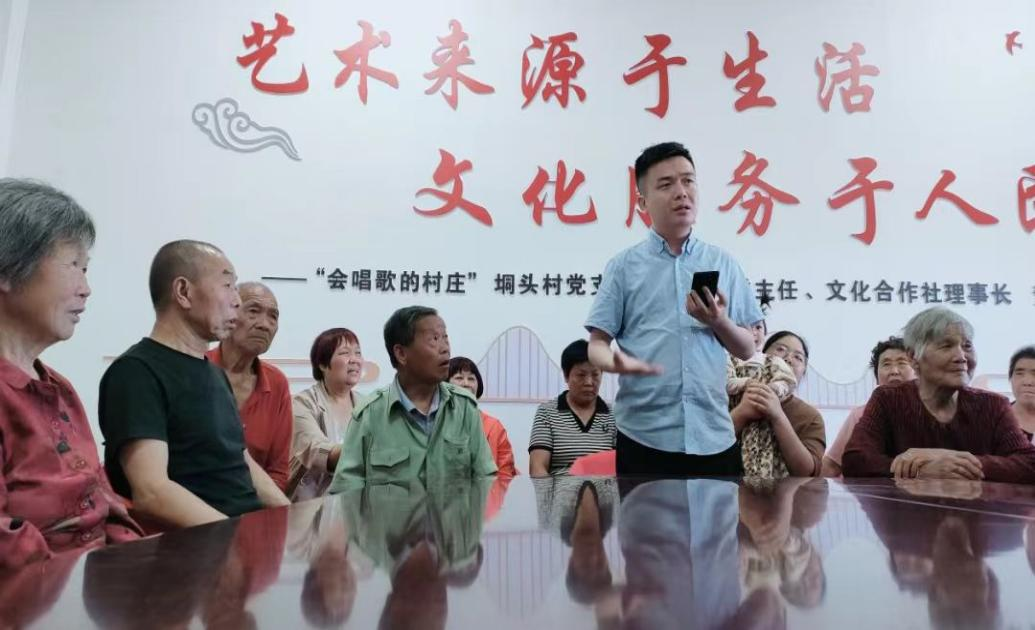 在旅游業快速發展、產業蒸蒸日上的同時,董藝文因地制宜,在垌頭村創立了合唱團,并以傳統文化為主要內容不斷發展、壯大合唱團?;貞浧饎撧k合唱團的往事,董藝文說道:“我們創立了全國第一個農民合唱團,合唱團的故事三次登上《人民日報》,兩次頭版,六上央視,被譽為‘會唱歌的村莊’。那時我便深深意識到,傳統文化要積極創新,轉化為產業,才能實現鄉村振興?!痹谖幕瘡姶宓奶剿髦?,董藝文提出了“通過文化引領鄉村振興的道路”。他告訴鄉親們:“從前我們會唱歌,現在我們要發展成產業!”