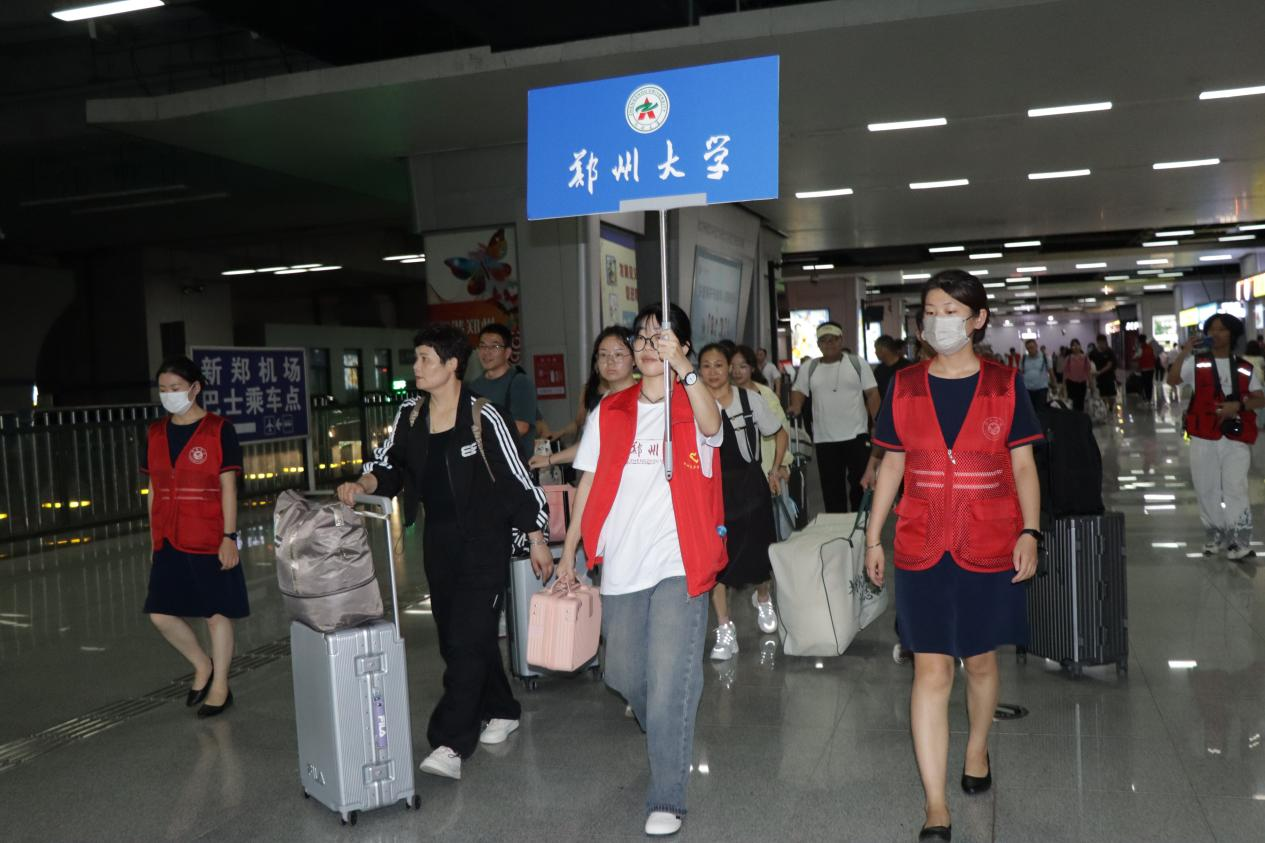 “鄭州大學歡迎你!”在鄭州東站和鄭州火車站的迎新接待點,負責引導新生的志愿者們,手舉標識牌“鄭州大學”,幫助新生一出站就能找準“家”的方向。14輛接送車輛往返站點和學校,60余名迎新接站志愿者分布在新生接待站,新生同學們一出站就能看到志愿者的身影。