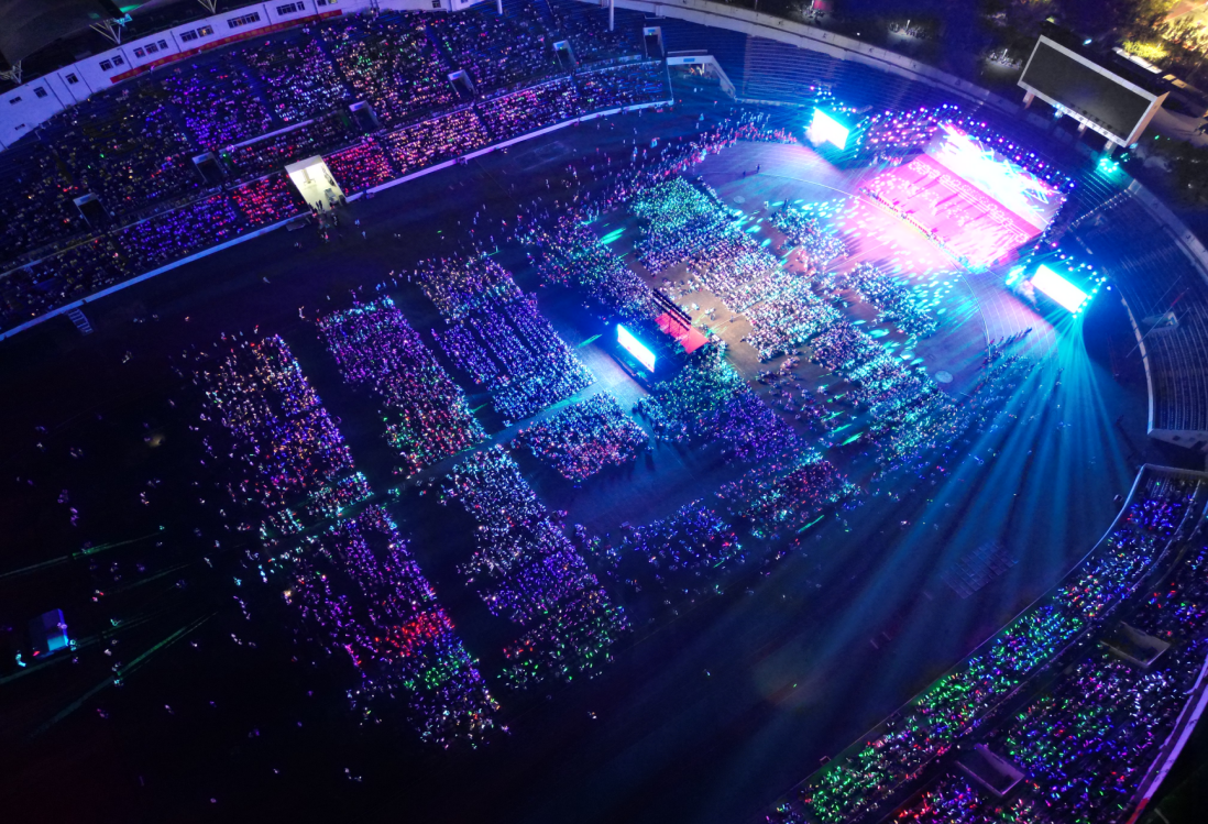 臺上燈光閃耀、紅旗飄揚,映襯著鄭大學子的靚麗身影;臺下熒光閃爍、繽紛燦爛,照耀著現場師生的拼搏面貌?!笆?、九、八、七……”隨著倒計時的數字逐一消散,青春意氣與飛揚夢想在鄭大相遇,譜寫著屬于新生的華麗篇章。9月27日晚,鄭州大學2024級慶國慶暨迎新生文藝晚會在主校區本源體育場隆重舉行。