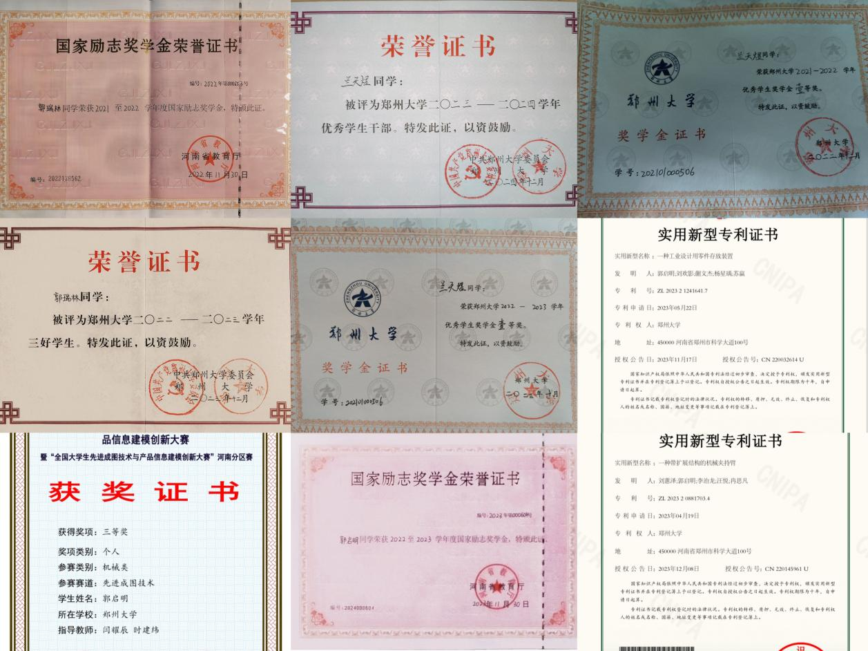 在校期間,六人獲得獎(jiǎng)項(xiàng)共計(jì)二十幾項(xiàng),多次獲得不同等級(jí)的校級(jí)獎(jiǎng)學(xué)金以及“三好學(xué)生”“優(yōu)秀學(xué)生干部”“優(yōu)秀團(tuán)員”“優(yōu)秀青年志愿者”等校級(jí)榮譽(yù)稱號(hào),累計(jì)研發(fā)實(shí)用新型專利達(dá)七項(xiàng),參與多項(xiàng)校外實(shí)踐項(xiàng)目。