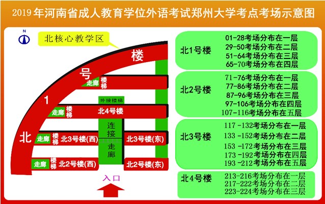 2019年河南省成人高等教育本科生申請學士學位外國語水平統一考試將于2019年4月21日9時在鄭州大學主校區(鄭州市科學大道100號)北核心教學區舉行。為確保廣大考生順利參加考試,現將考場分布示意圖及路線圖公布如下: