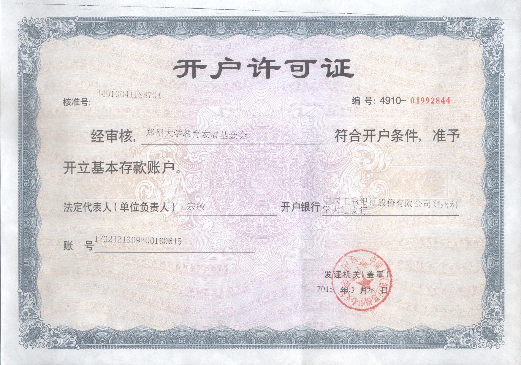 2015年3月9日河南省民政廳印發《河南省民政廳關于同意鄭州大學教育發展基金會設立登記的批復》(豫民函[2015]42號)文件,同意我校設立鄭州大學教育發展基金會。