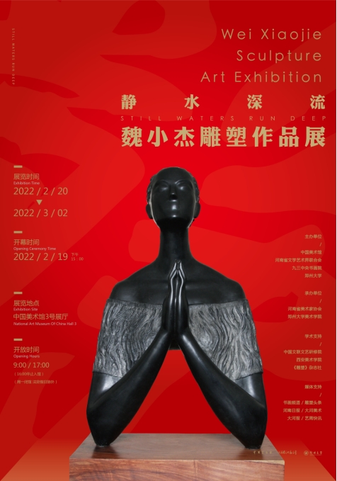 由中國美術館、河南省文學藝術界聯合會、九三中央書畫院、鄭州大學主辦,河南省美術家協會、鄭州大學美術學院承辦,中國文聯文藝研修院、西安美術學院、《雕塑》雜志社給予學術支持的“靜水深流——魏小杰雕塑作品展”將于2022年2月20日至3月2日在北京中國美術館一層3號廳展出。開幕式于2月19日下午15:00在中國美術館一樓大廳舉行。