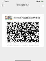 參加培訓人員請掃碼加入微信群,如二維碼過期可到鄭州大學外國語與國際關系學院網站掃碼入群(鄭州大學外國語與國際關系學院http://www5.zzu.edu.cn/fld/),報名截止時間為2022年6月25日。