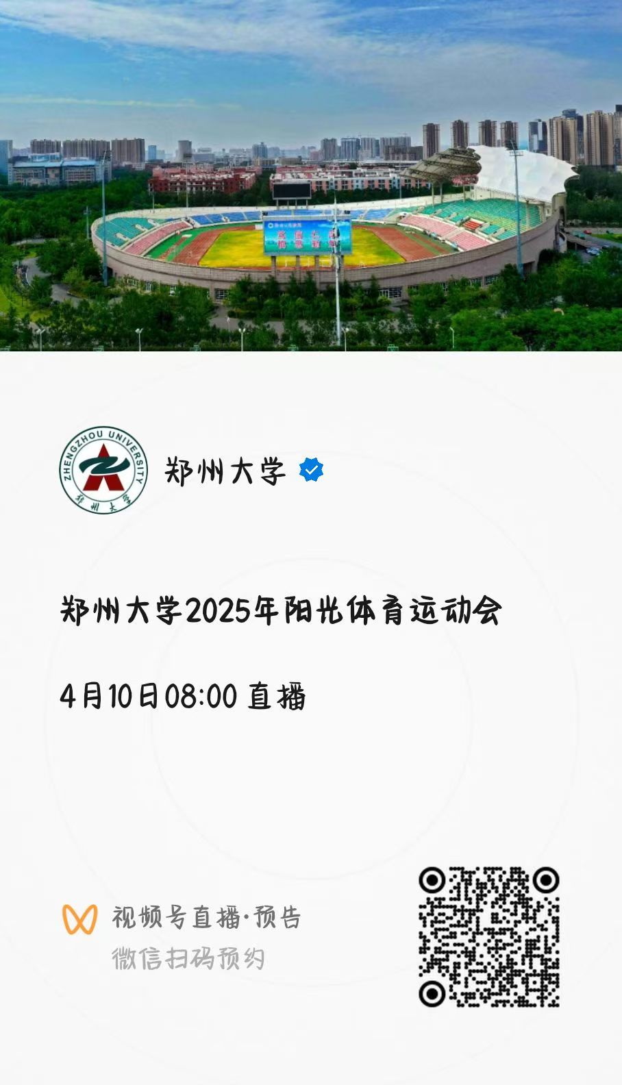 鄭州大學2025年陽光體育運動會開幕式定于4月10日8:00在主校區本源體育場舉行。現就運動會開幕式線上直播相關工作通知如下: