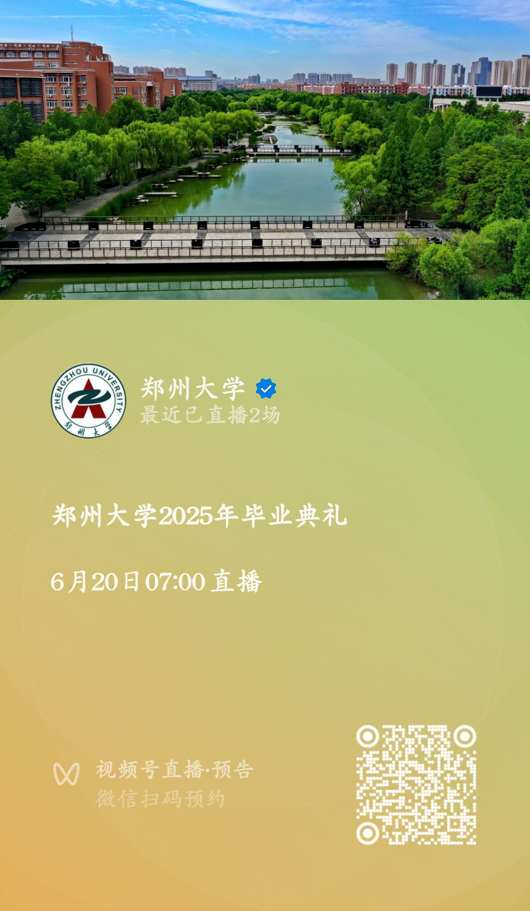 “鄭州大學(xué)”官方微信視頻號(hào),掃描下方二維碼可以觀看直播。